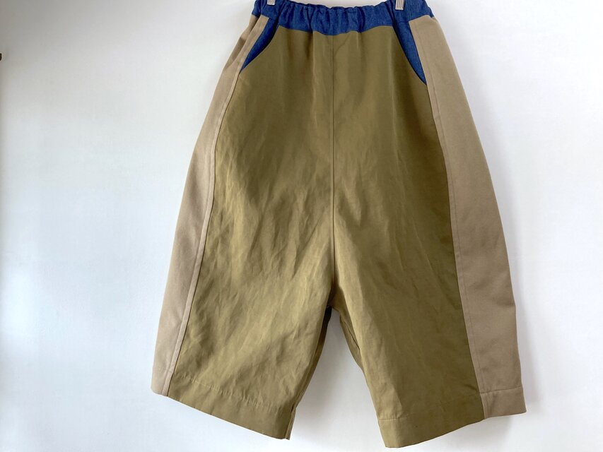 生地をパッチワークして作ったhonakanaのダボパンツです。
