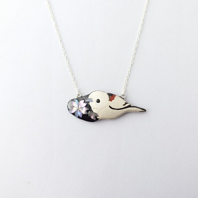 桜螺鈿 シマエナガ漆ネックレス(sv)