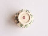 落ち着いた色でお花や蔓のベースを描き、ガラス質で透明感のあるパステルカラーをのせています。
