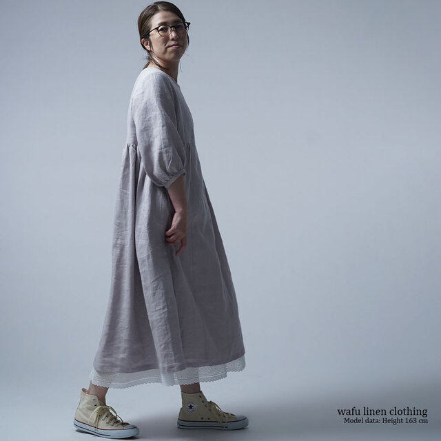 【wafu】Linen Dress サイドギャザー ワンピース / 灰桜(はいざくら) a057b-hzk1