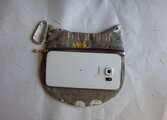 化粧品やサニタリー等の小物入れ、デジカメケースに使えます。小さめのスマホも入れられます。(撮影に使ったスマホは14cm×7cmで厚さ0.5㎝です。このサイズなら斜めにして入れてギリギリ入ります。14cm以上、厚みが1cm以上あるスマホは入りません。)
