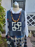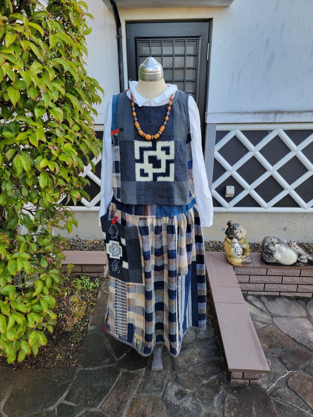 着物リメイク 手作り 絵がすり、チェックなど パッチベストとスカートセット