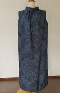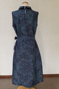 大島紬リメイク ロールカラー襟ぐりギャザーワンピース