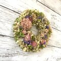 千日紅、帝王貝細工、スターチス (ドライフラワー) ソーラーローズ、ユーカリ、ピンク小花
