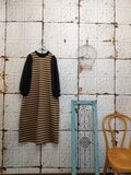 キャメル&ブラックボーダーお袖がジョーゼットのワンピース