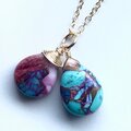 ピンク コッパーターコイズ ペアシェイプ ツイントップネックレス 14kgf
