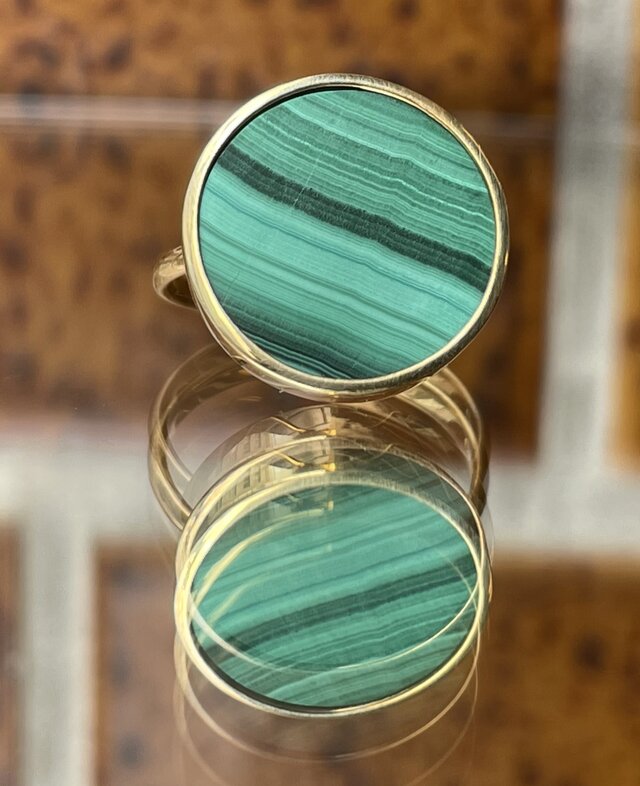 マラカイト 緑のシマシマ ラウンド プレート シルバーSV925製リング