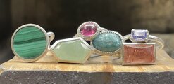 プレナイト 変形6角形 チェックカット シルバーSV925製リング