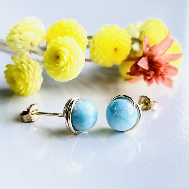 ラリマー 1粒ピアス 14kgf 世界三大ヒーリングストーン ドミニカ共和国産