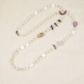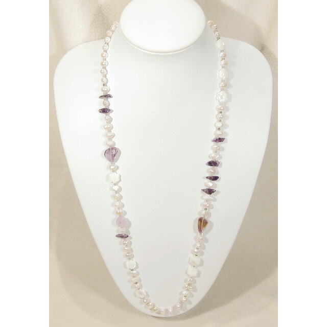 本真珠(淡水パール)と貝パーツ、アメトリン、アメシスト、SV925のロングネックレス(白蝶、マザーオブパール、天然石、さざれ)