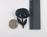 プックリした真珠からヒラヒラとなびく虹色のヒレ。 とっても素敵です。 大きさも十分ですし、スワロフスキ-のアクセントも効いています。 黒い服に映えそうです。