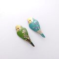 見返りセキセイインコ(金)桜螺鈿 漆ブローチ