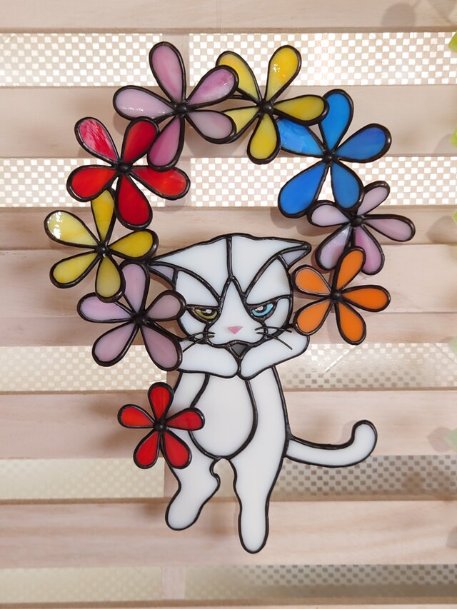 猫さんの表情がとても可愛いです。 体が揺れたり、お花のおしべにビーズが使われていたり色々なアイデアに感動しました。 素敵な作品をありがとうございました。
