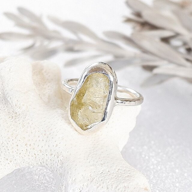 マダガスカル産 イエローベリル原石のリング 槌目 12号