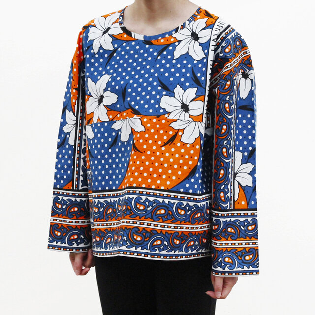 カンガのブラウス 長袖( フラワー )アフリカ布 服 カンガ服