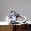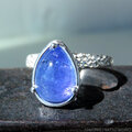 独特のブルーが映えるタンザナイトを、透かし模様の台座にセッティングしました。