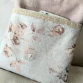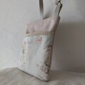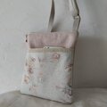 前面のポケットは淡いペパーミントにベージュの濃淡の薔薇柄で、大人の雰囲気です。