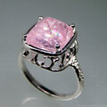 独特の色彩がシュガーローフカットに映える石を、透かし模様の台座にセッティングしました。