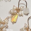 ピアスパーツには、一粒のオパールと淡水パール4個を下げました。