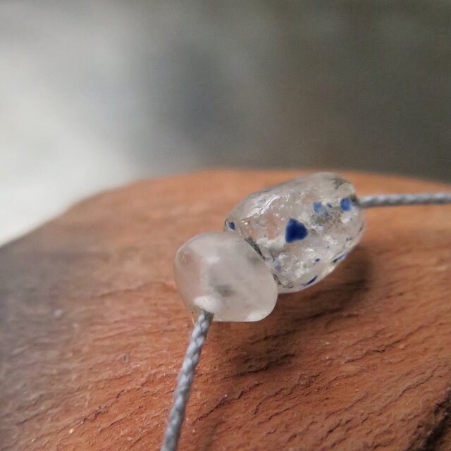 アンティーク 施釉水晶 & 古代水晶 + 青 & 銀 ブレスレット 千世 chitose