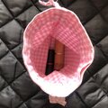 春のプレゼントにお勧めのガーリー巾着です。女の子が大好きなピンクのギンガムチェックを裏地に使った可愛い袋です。プレゼント