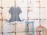 グレーボーダーに少しだけシースルーのふんわり袖トップス