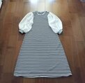 黒白ボーダーに少しだけシースルーのふんわり袖ワンピース