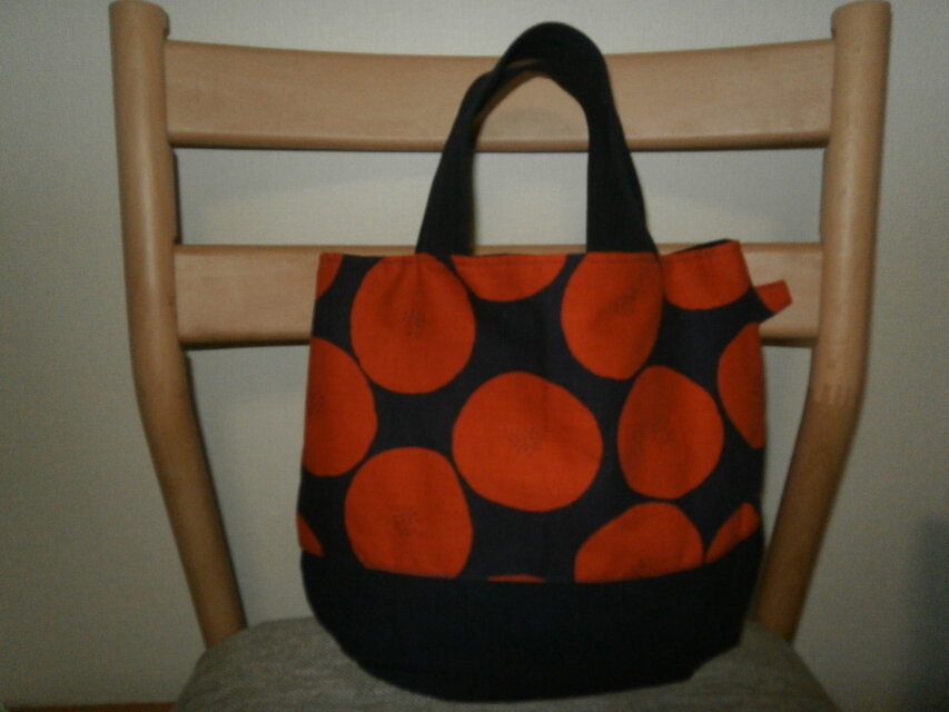 綿麻*ブラック地・ドット柄*オックス生地*手提げ