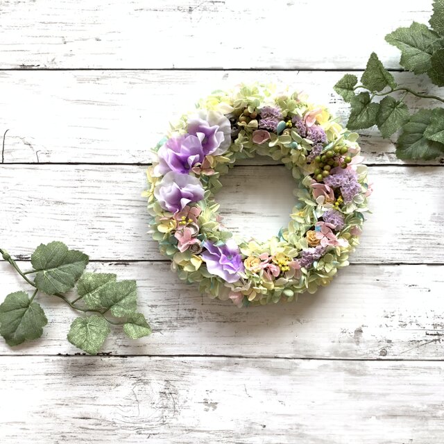 【フラワーギフトに!】パープルのスイトピーのリース ♯父の日 ♯フラワーギフト ♯新築・引っ越し祝い