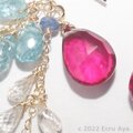 一番長いチャームは、一番上に宝石質サファイアAAAのボタンカットを配置してチェーンWの下げ、一番下にもボタンカットのサファイア、そしてそこに宝石質サファイアAAAのドロップブリオレットカットを下げました。