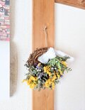 リースには掛けるための紐が付いているので、届いたらすぐに、壁にかけたり、あるいは棚の上の瓶に刺したりして飾っていただけます。