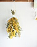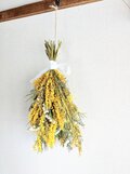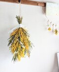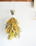 ミモザとスターチスの素朴でレトロなドライフラワースワッグ