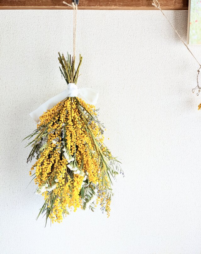 スペクタビリスという品種はミモザの中でも大輪で、ドライになってもぷるんとした感じがとても可愛らしいです♪
