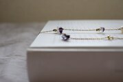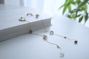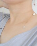 細いチェーンに淡水パールとフローライトを不規則にあしらった、