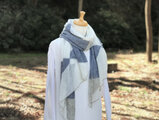 フレンチリネンの大判ショール 幾何学模様 White/Blue