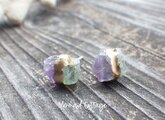 *sv925*Raw Amethyst &Aquamarine S 原石の金継ぎピアス☆アメジスト&アクアマリン☆シルバー925
