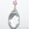 片方には、ピアスパーツにピンクサファイアを2個つなぎ、一番下に大粒の方のアクアマリンを下げました。