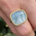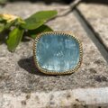 アクアマリン 大きめスクエア チェックカット シルバーSV925リング