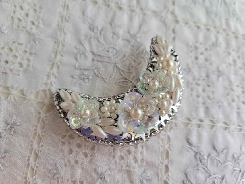 クールな銀色のお月様のブローチ。