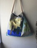 リネンのコラージュと刺し子のバッグ 『光と風』