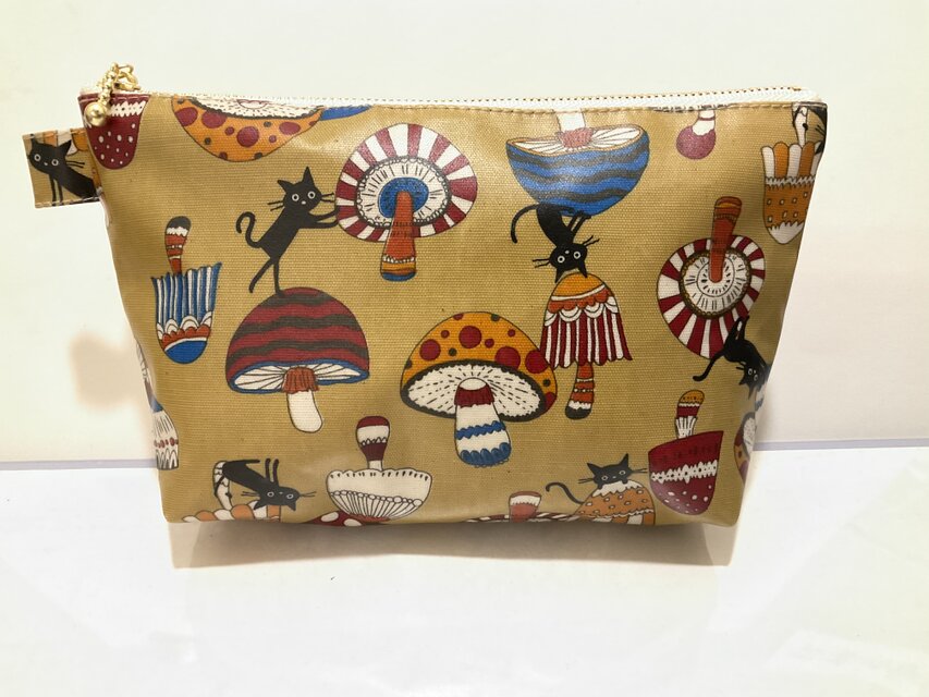 黒猫ときのこのラミネートポーチ