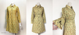 黄色小花柄の薄手生地を使用したシャツ型ワンピースです。