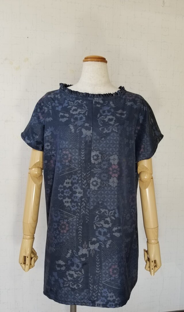 フレンチスリーブで、襟ぐりにフリルをあしらいました。