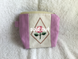 しっかり目の刺繍用布地にお花の刺繍を施した少し小さめのポーチです。