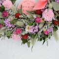 花材:ユーカリ、デュモサ、ラグラス、スターチス、ミニバラ、ソーラーカーネーション他…
