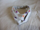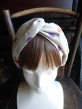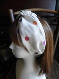 リネンに水玉柄刺繍がされたオシャレな生地のクロスヘアバンドです。