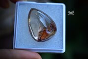 赤いライモナイトが入り混んでいる立体的な内包物が美しいピース