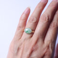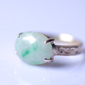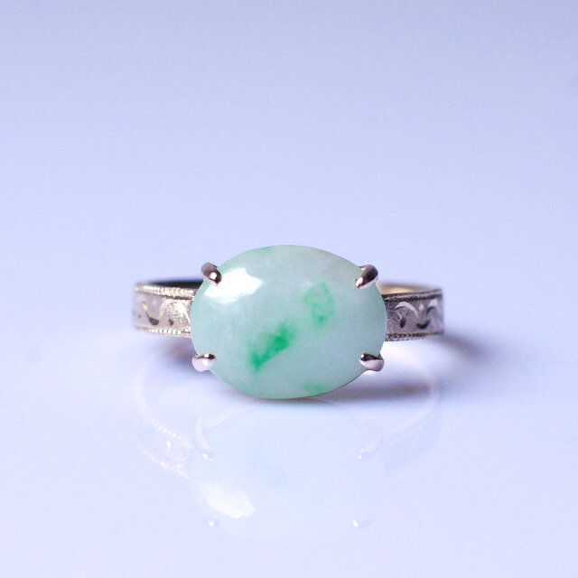 商品画像や説明の通りで、素敵なリングでした。氷ひすいの優しい色と、アームは実は仏さまがいるという、個性的なデザインに惹かれました。また、仕上げの艶消し加工が本当に綺麗です。指にスッと馴染み着け心地も良いです。たいへん気に入りました。大切にします。丁寧なご対応もありがとうございました。