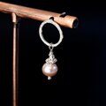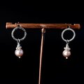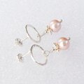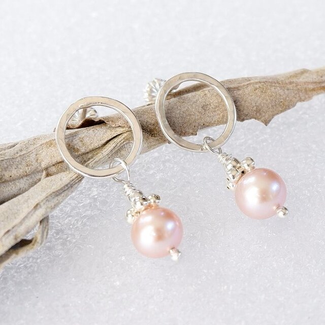 ピンクベージュの淡水パールを、槌目を付けたサークルピアスに留めてみました。