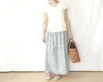 お腹周りはすっきりさせつつ、ふんわりしたシルエットになるよう切り替え部分にギャザーを程よく入れています。